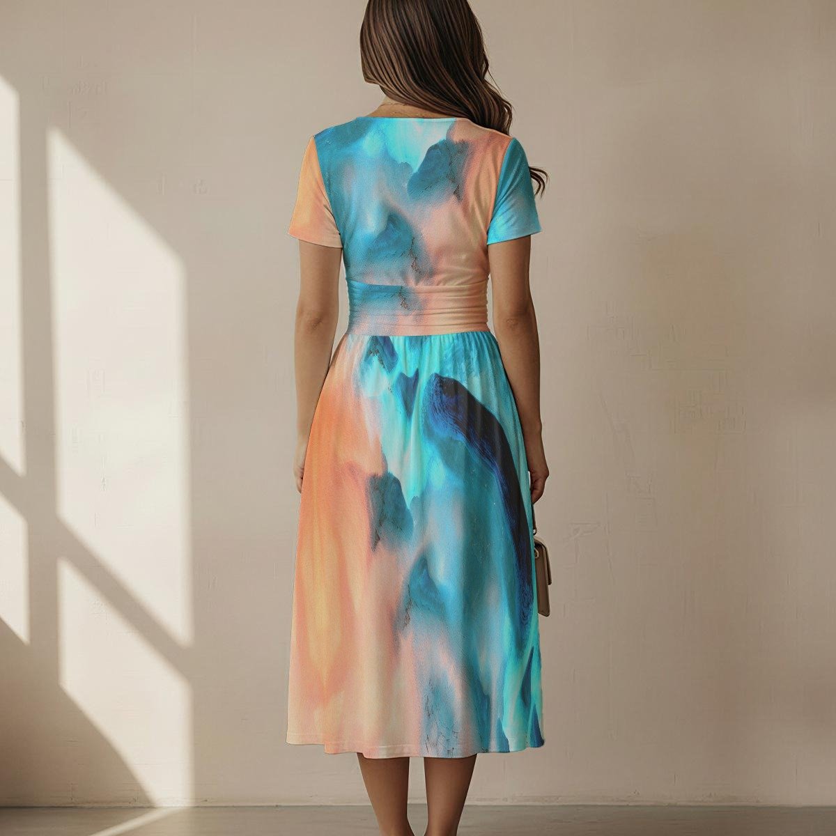 Add a touch of color and elegance to your wardrobe with this stunning midi dress. Made from soft cotton polyester, it combines comfort and style for any occasion. It features a fitted, slanted V-neckline. The hidden zipper on the side ensures a comfortable, close fit that’s easy to put on.