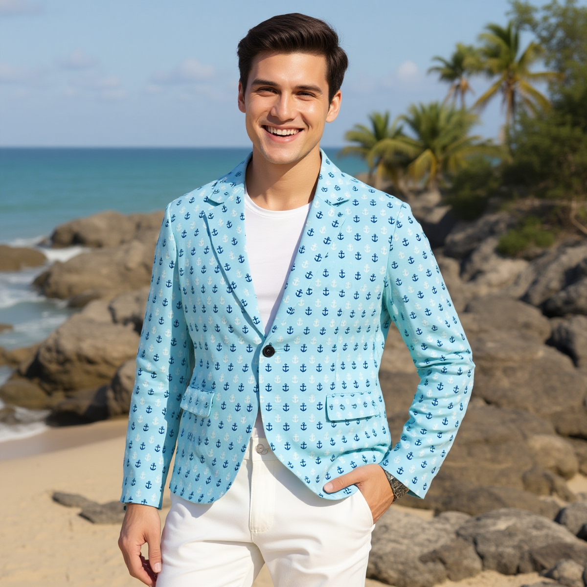 • Combination design link:All-Over Print Men’s Casual Flat Lapel Collar Blazer | 245GSM Cotton Combination version