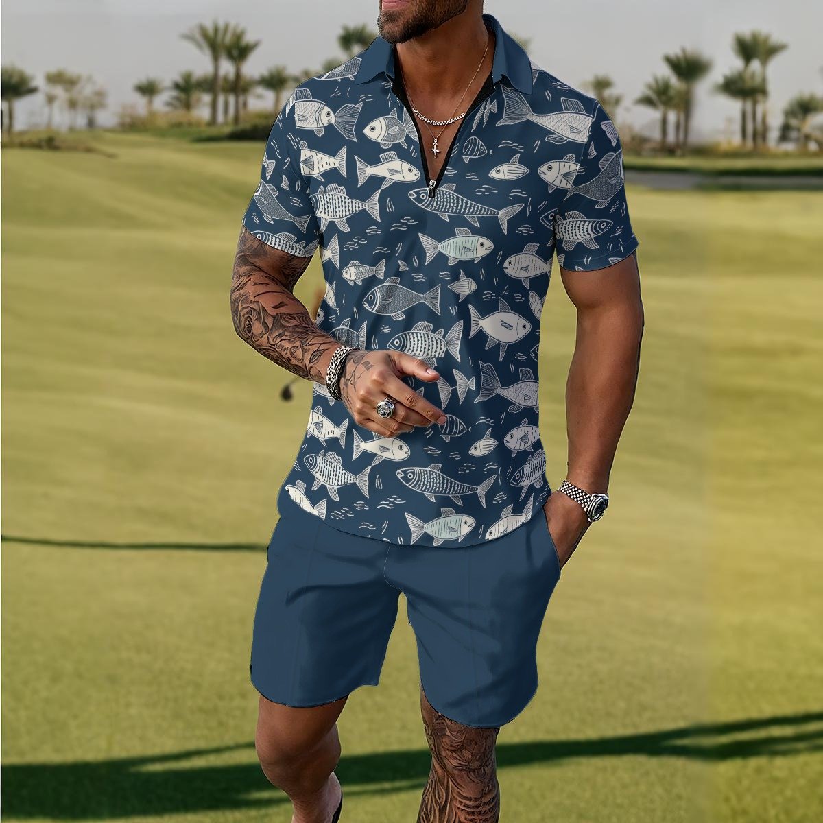 This men’s tracksuit is made from high-quality fabric that offers breathability, flexibility and comfort. The fabric is lightweight and next to the skin, making it ideal for active or casual wear during spring and summer. The top features a zip-up polo neck for a sporty yet clean look, while the shorts have a loose, above-the-knee fit and a flexible drawcord for freedom of movement.