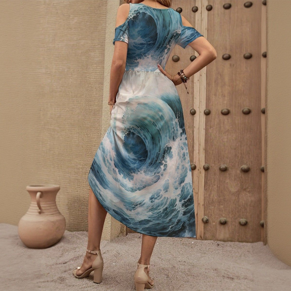 Experience effortless elegance in our off-the-shoulder maxi dress, the perfect blend of comfort and style. Made from high-quality, lightweight and soft fabric, this dress is designed to keep you cool and comfortable while looking fabulous all day long. The fitted V-neck and sleek, off-the-shoulder short sleeves flatter your shoulders for a feminine, modern silhouette. The high-rise cut, slightly nipped in at the waist, and draped at the hem for a fitted, figure-flattering drape without sacrificing comfort.