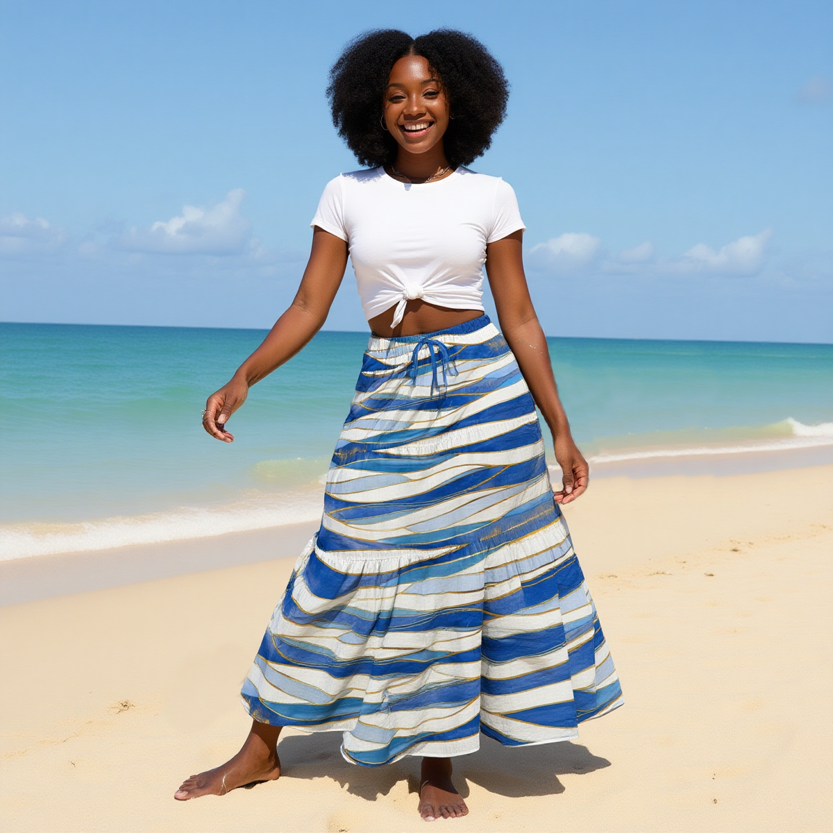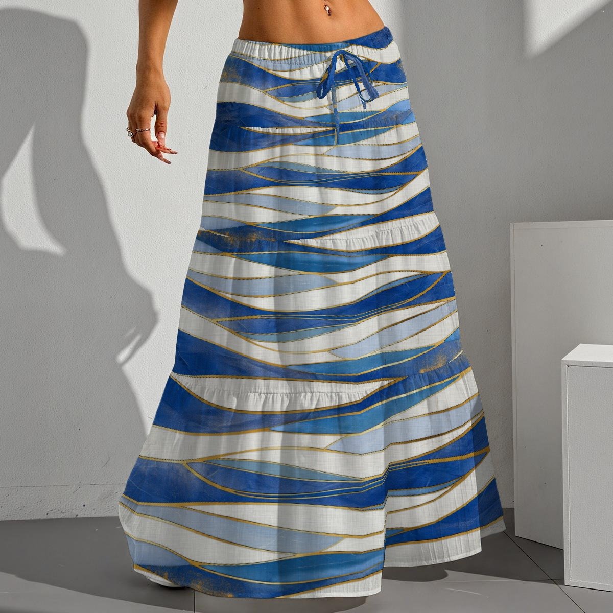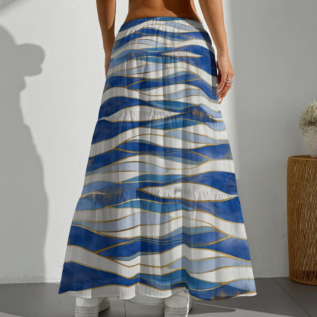 This elegant women’s maxi skirt is crafted from high-quality polyester with a unique bamboo texture, making it a refreshing addition to your wardrobe. The bamboo-like texture adds a natural, stylish touch, while the flowing silhouette ensures all-day comfort. This tiered design features a drawstring elastic waistband for effortless style and adjustable fit. Whether you’re on a beach vacation, on a casual outing, or enjoying a summer evening, this versatile piece is sure to be worn again and again.