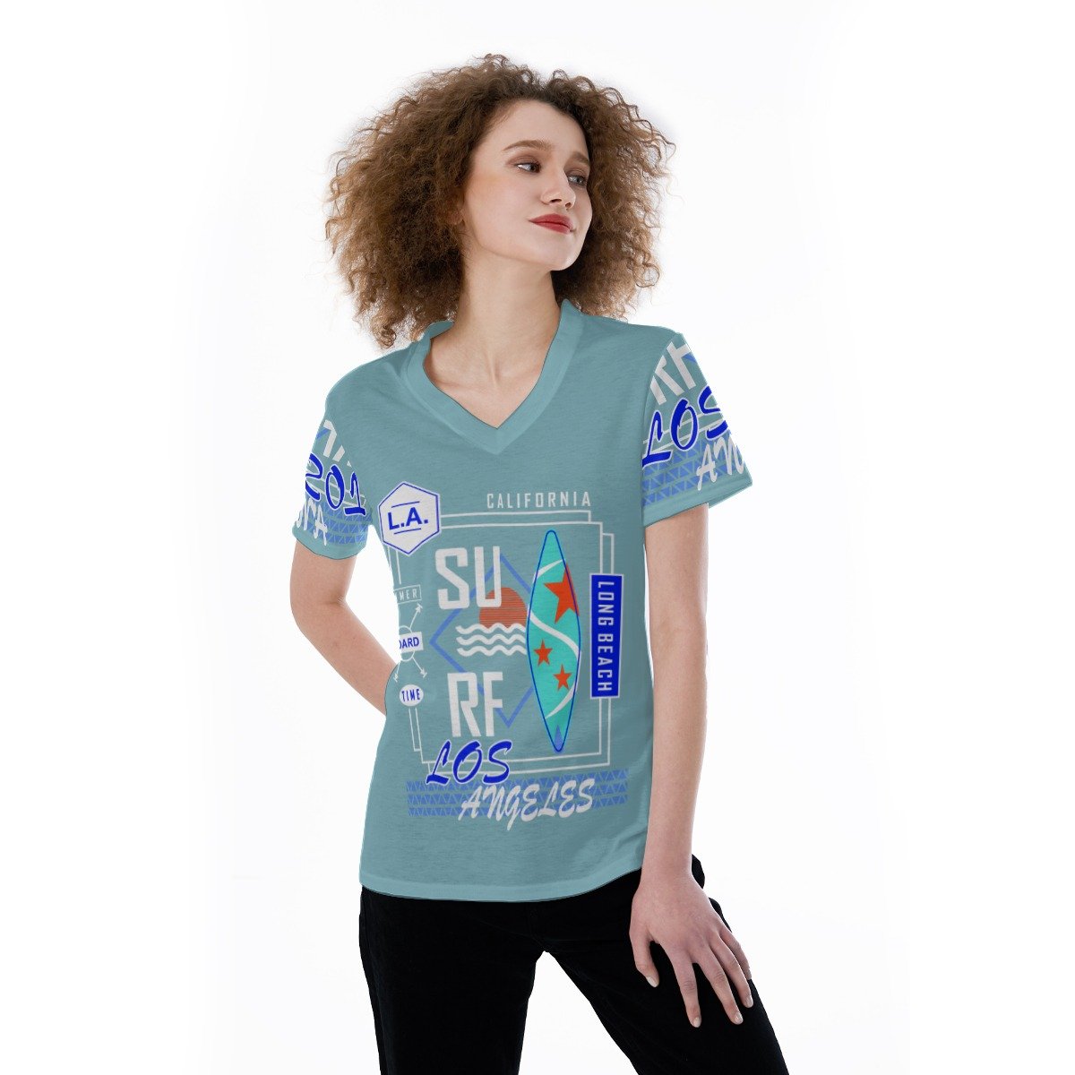 - V-neck, short sleeves.