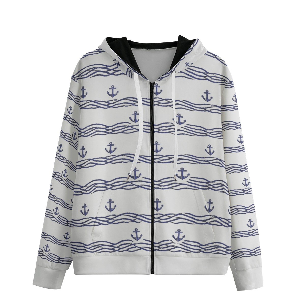 White anchor / Felpa in cotone con cappuccio e zip